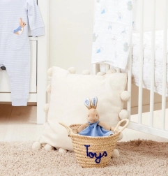 Predstavljamo plišasto ninico zajčka, izdelano iz najmehkejšega pliša in 100% bombaža. Izdelek je zasnovan tako, da zagotavlja pomirjujoč občutek in spodbuja senzorični razvoj vašega otroka. Zajček je estetsko usklajen z modro odejico, ki prinaša občutek miru in varnosti. Ta plišasti spremljevalec je idealen za počitek po kosilu ali pred spanjem in bo všeč vsakemu otroku. Popolno darilo za male ljubitelje zajčkov.