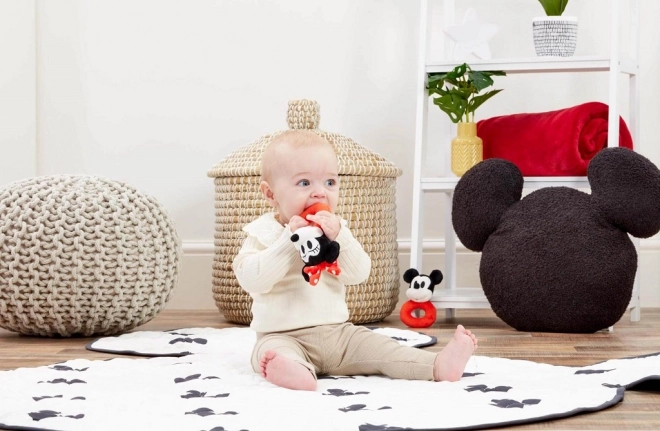 Ljubka plišasta ropotuljica MINNIE z mehkim obročkom za drobno ročico razveseli vsakega dojenčka od rojstva dalje. Izdelana je iz mehke kakovostne plišaste tkanine v črno‑belo‑rdečem slogu, vsebuje nežno ropotuljico za senzorične dražljaje in podpira fino motoriko, prijemanje in stresanje.