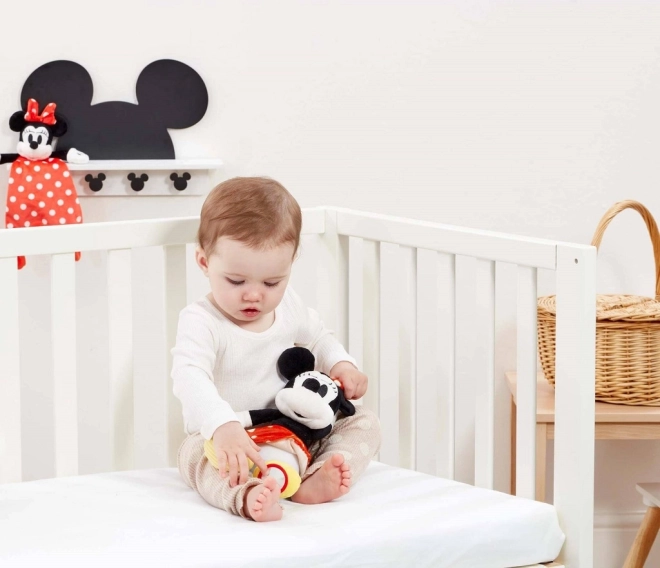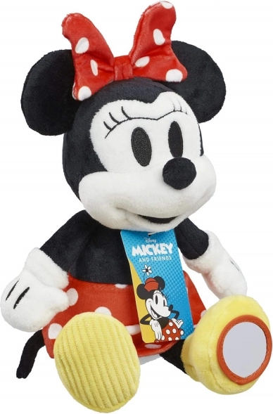 Plišasta miška MINNIE Activity otrokom od rojstva naprej prinaša nežne spodbude za raziskovanje sveta. Ikoničen videz z rdečo pentljo in pikami razveseli male in velike oboževalce MICKEY & FRIENDS. Kompaktna velikost 18 cm je idealna za posteljico, voziček in potovanja.