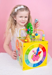 Odkrijte zabavno in poučno motorično kocko Bino, ki otroke na igriv način spodbuja k razvoju spretnosti. Vsaka stran kocke prinaša drugo dejavnost, da lahko otroci vadijo koordinacijo oko–roka in izboljšujejo zbranost.