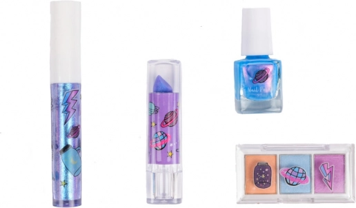 Ta make up set je idealen za vse kreativne duše, ki želijo izraziti svoj slog z domiselnim ličenjem. Senčila za oči, bleščilo za ustnice, šminka in lak za nohte v holografskih barvah vam omogočajo eksperimentiranje ter ustvarjanje novih in svežih videzov.