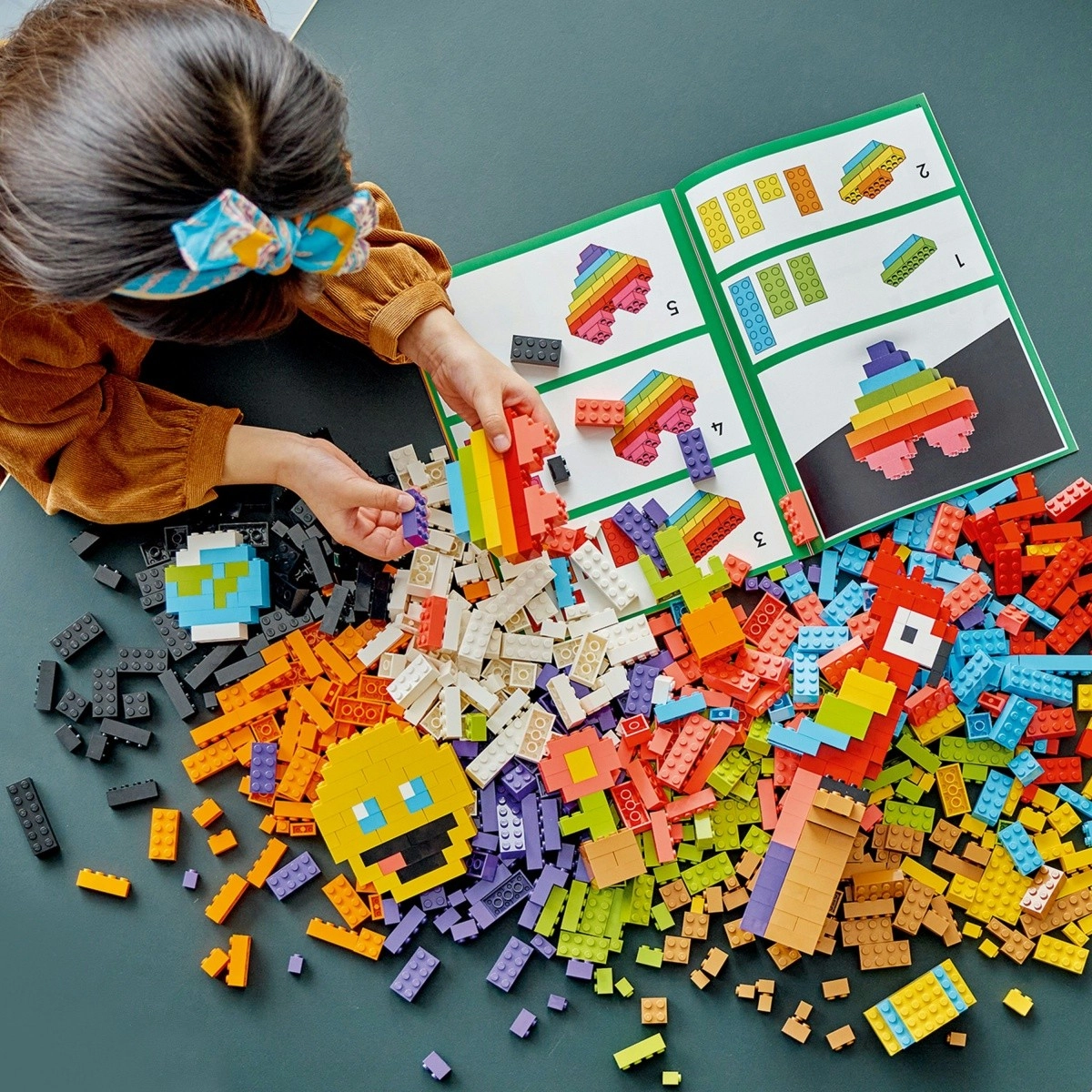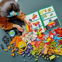 Ta univerzalna sestavljanka prinaša ikonične kocke v pestrih barvah, vključno z legendarno kocko 2×4. Priložena je pregledna brošura z navodili za zabavne modele in nasveti, kako otroke navdihniti za lastno ustvarjanje. Digitalna navodila najdete tudi v aplikaciji LEGO Builder.