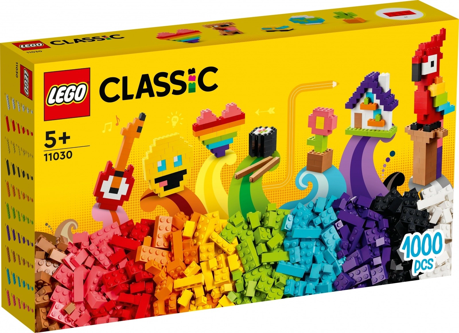 Odkrijte neskončne možnosti sestavljanja s setom LEGO Classic Kup kock – barvita sestavljanka s 1000 deli v 10 izrazitih barvah. Otroci od 5. leta bodo uživali v kreativni prostočasni igri, enostavnih tiskanih in digitalnih navodilih ter priljubljenih modelih, kot so avto, globus, cvet, papiga ali srce. Odlično za skupno sestavljanje cele družine in razvoj domišljije ter fine motorike.