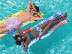 Blazina v živahnem tropskem dizajnu prinaša barvito razpoloženje v vsak počitek ob vodi.