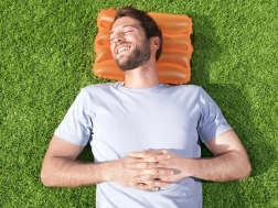 Naslonite glavo na mehak vzglavnik med počitkom na travi, plaži ali ob vodi. Lahek in enostaven za prenašanje, idealen za sprostitev v naravi.