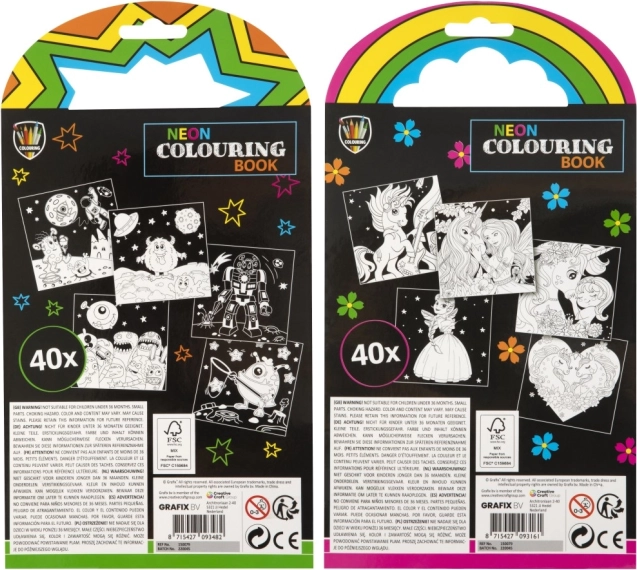 Neonske pobarvanke so odlične za fino motoriko, kreativnost in relaksacijo. Zaradi dveh različic motivov si otroci zlahka najdejo svoj slog – od fantazijskih likov do igrivih robotov in motivov iz narave. Set je idealen za dom, vrtec, na potovanja in kot darilo.