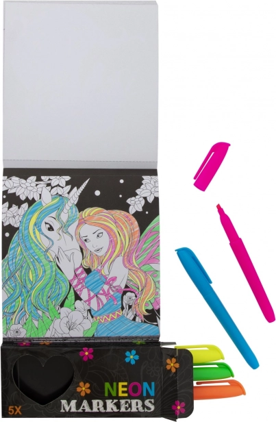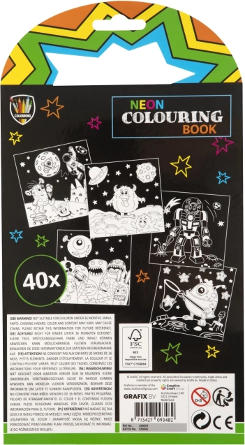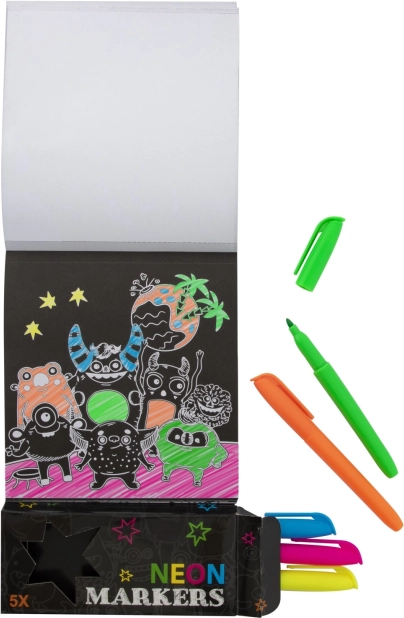 Ta igrivi set neonskih pobarvank otrokom prinaša ure zabave in razvoja domišljije. Črna ozadja in žive barve ustvarjajo privlačen kontrast, zaradi katerega izstopa vsaka umetnina. Paket vključuje 40 listov z motivi in 5 neonskih flomastrov, s katerimi barve res zasvetijo.