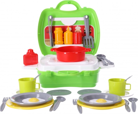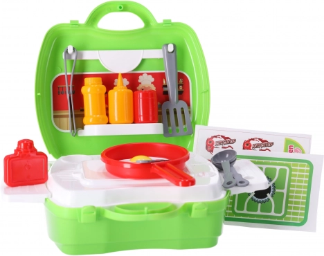 Ta kuhinjski set vsebuje vse potrebno za kulinaricne ideje vaših otrok. Je enostavno prenosljiv zahvaljujoč dizajnu v obliki torbe, zato ga lahko postavite in se igrate kjerkoli je to potrebno. Set je zasnovan tako, da razvija otroško domišljijo in pomaga otrokom prepoznavati predmete, medtem ko se zabavajo.