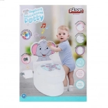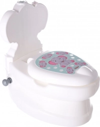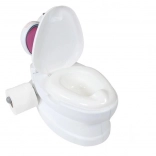 Premišljene podrobnosti, kot so zapirljiv pokrov in elementi, ki posnemajo stranišče, motivirajo otroke k posnemanju odraslih. Kompaktne dimenzije se podajo vsaki kopalnici ali otroški sobi, prav tako pa je enostaven za prenašanje in čiščenje.