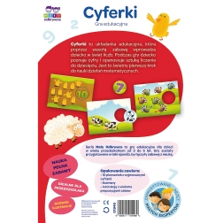 Igra Številke iz serije Mali Odkritelj Trefl je odlično sredstvo za začetek pustolovščine z otrokom in številkami. Otroci med igranjem izboljšajo logično razmišljanje in širijo besedni zaklad. Zaradi enostavnih pravil in številnih možnosti igre, kot so sestavljanke, tekmovanja ali iskanje številk, je idealna za predšolske otroke. Na zabaven način podpira komunikacijo, vidno-motorično koordinacijo, logično-matematično razmišljanje, spomin, koncentracijo, domišljijo in kreativnost.