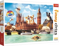- Sestavljanke vsebujejo kolaž slik psov različnih pasem v okolju visoko prepoznavnega Londona.