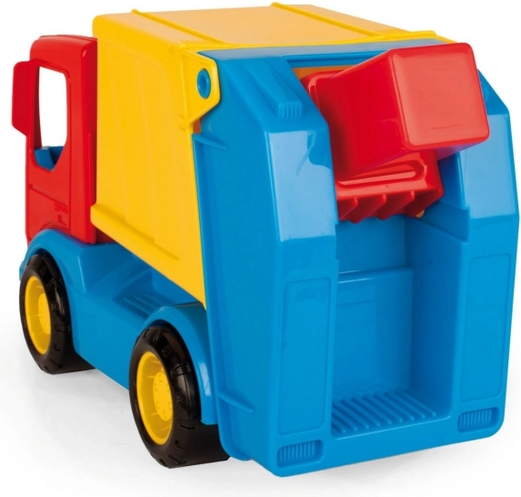 Barvit in trpežen smetarski kamion Tech Truck dolžine 26 cm iz kakovostne plastike za igro doma, na plaži in v pesku. Ima odpirljiv zadnji pokrov, premični dvigalo in zabojnik za odpadke. Odlično razvija fino motoriko, koordinacijo oko–roka in domišljijo otrok.