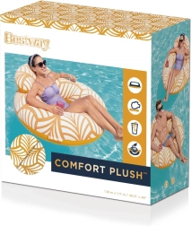 Oddahnite si, sprostite in napolnite baterije, medtem ko uživate v razkošnem žametnem materialu Bestway Comfort Plush Deluxe. Material daje plovcu gladko in mehko strukturo, ki je idealna za dan ob bazenu! Material Comfort Plush je kot nalašč za tople dni, saj zagotavlja, da se površina plovca ob izpostavitvi vročemu soncu ne segreje preveč. Ko je v vodi, so barve intenzivnejše in ustvarijo privlačen učinek. S podloženim naslonom boste lahko čez dan počivali ter ostali hkrati stilni in v udobju! Vgrajeni držalo za pijačo vam omogoča, da imate najljubšo pijačo ali prigrizek vedno pri roki. Konstrukcija vključuje dvosmerni hitri ventil, ki zagotavlja preprosto in učinkovito napihovanje ter izpust zraka. Obroč Comfort Plush Deluxe lahko izven sezone zlahka zložite in shranite. Ta razkošen bazenski plovec je idealen za poletne dni in predstavlja popoln način sprostitve ob vodi. Nesporna prednost obroča je, da spodbuja telesno aktivnost. Spravite ga v torbo in se pripravite na številne sončne dni, ki si jih boste zapomnili, kamor koli vas že ponesejo poletne dogodivščine.