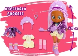 Phoebe obožuje vijolično barvo, ima vijolične lase, rumen kombinezon z vijolično in kovinsko jakno, vojaške škornje in visoke nogavice! Dopolnjuje jo vijolična torbica, naglavni trak z dinozavrovo inspiracijo in edinstvena BFF ogrlica.