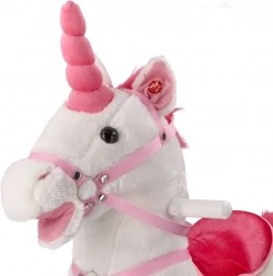 Samorog ima mehko, plišasto površino z belim telesom in rožnatimi detajli, zaradi česar je čudovit dodatek otroški sobi ali igralnici.
