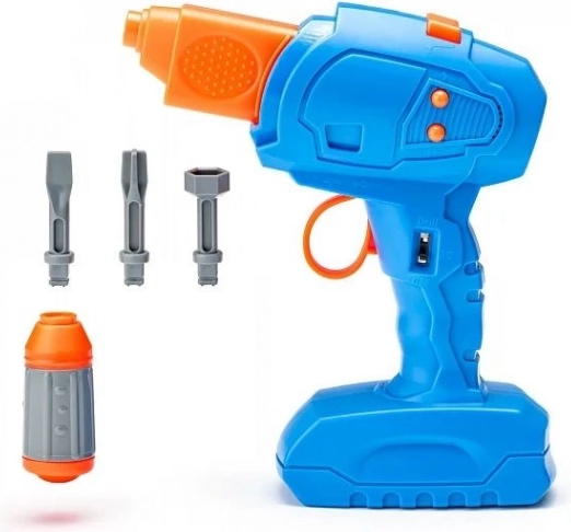 Del paketa je otroški vrtalnik z enostavnim upravljanjem in menljivimi nastavki. Otroci bodo uživali v realističnem občutku montaže, urili prijem in koordinacijo oko–roka.