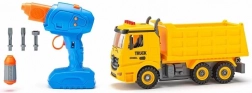 Set vsebuje plastične dele vozila in kolesa za lastno montažo. Otroci vozilo sestavijo in se lahko takoj odpravijo na gradbišče.