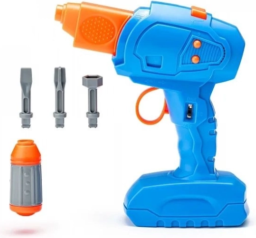 Varen plastičen vrtalnik z zamenljivimi nastavki podpira realistično igro in uri fino motoriko.
