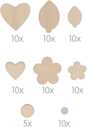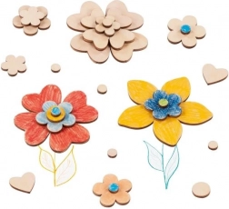 S tem pisanem setom lesenih koščkov v obliki rožic boste pripravili izvirne dekoracije, voščilnice, slike in sezonske okrasitve. Deli v dimenzijah od 7 do 32 mm se zlahka lepijo, kombinirajo in barvajo, zato lahko otroci razvijajo svojo domišljijo in spretnost.