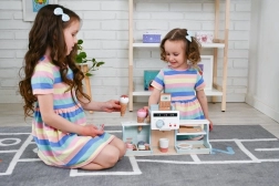 Otroci si lahko »skuhao« espresso, obračajo gumbe in strežejo gostom kot v mali kavarni. Odlična osnova za igro barista.