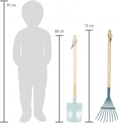 Vsak kos je izdelan iz kombinacije lesa in kovine za dolgo življenjsko dobo. Zanke na ročajih omogočajo enostavno obešanje in pregledno shranjevanje. Uporabni so na gredici in travniku, pa tudi v peskovniku ali na plaži.