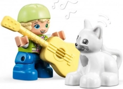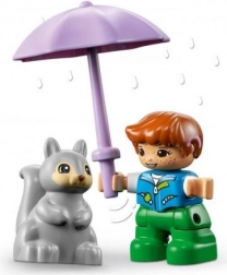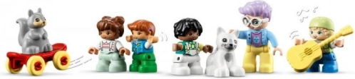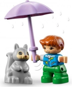 Komplet je poln dodatkov za domiselne prizore – od piknika pod dežnikom, preko vrtnarjenja s samokolnico in bučo, do vožnje na rolki s čelado. Pet figuric in tri živalce (ptič, mačka, veverica) navdihujejo igro vlog in skupno igro staršev z otroki.