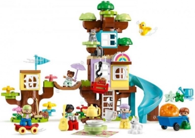 Odkrijte preurediljivi drevesni raj, ki raste skupaj z otroki. Zgradite tridelno igrišče v krošnjah z dolgim toboganom in visečim mostom, spremenite ga v udobno hišo na drevesu za deževne dni ali ustvarite dve hiški z vrtom, kjer boste s prikupnim vitlom dvigovali sadje.