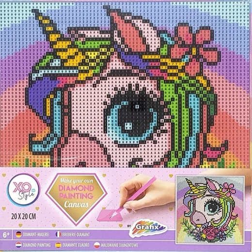 Diamantno slikanje je zabavna tehnika, ki združuje preprosto nanašanje kamenčkov z učinkovitim končnim videzom. Platno s tiskom je že napeto na lesenem okvirju, zato lahko končno delo takoj razstavite. Dovolj je, da postopoma odkrivate zaščitno folijo, nanesete vosek na pero in pritrdite kamenčke na označena polja.