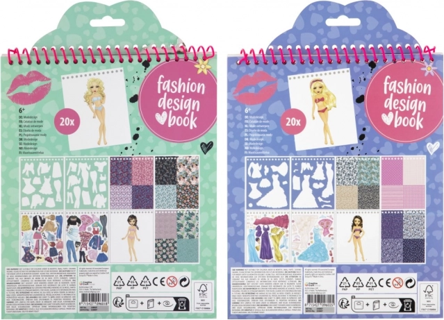 Oblikovalska modna knjiga Besties: 20 listov, nalepke in šablone. Ustvarjalni set za male oblikovalke v formatu 24 × 20 cm. Dve različici na izbiro.