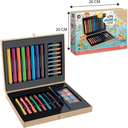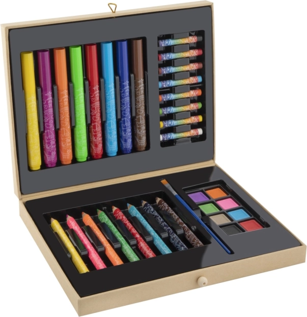 Komplet 33 delov ponuja široko paleto barv in orodij za slikanje, risanje in barvanje – idealno za začetnike.
