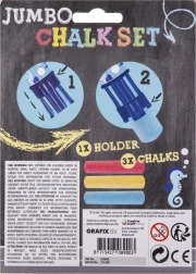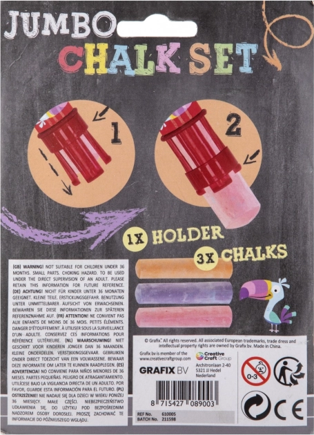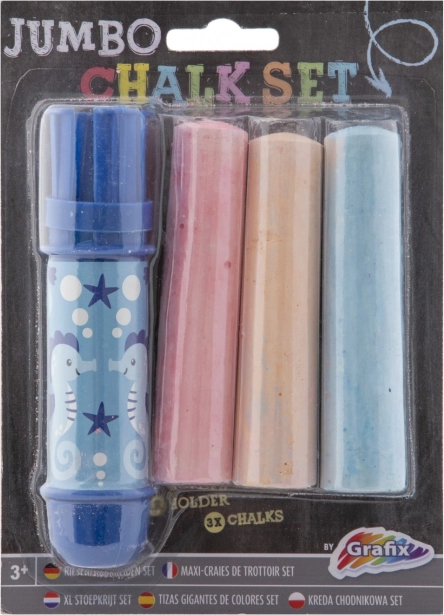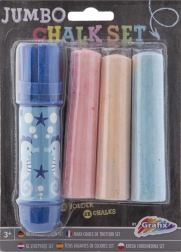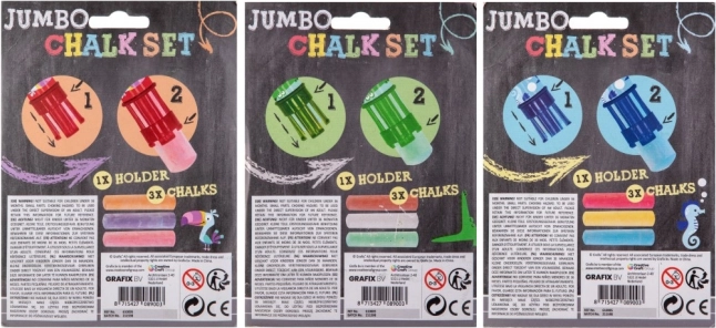 Odkrijte veselje risanja po pločniku, dvorišču ali šolskem igrišču. Ekstra debele jumbo krede dobro ležijo v roki in se manj lomijo, držalo pa ohranja roke čiste in olajša uporabo tudi mlajšim otrokom. Pakiranje vsebuje 3 krede v različnih barvah, ki ustvarjajo izrazite in enakomerne sledi.