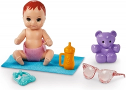 V kompletu so tudi praktični pripomočki: podloga, steklenička, plišasti medvedek, otroška očala in »plenica«, ki spodbujajo domišljijo, empatijo in razvoj fine motorike. Set je idealen za samostojno igro ali skupno igranje sorojencev.