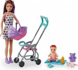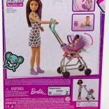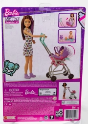Odkrijte čar negovalnih iger s setom BARBIE Skipper Varuška. Otroci lahko vozijo dojenčka v vozičku, ki se med vožnjo pozibava, zahvaljujoč odstranljivemu nosilu pa ga zlahka prenašajo. Stajliš lutka ima poletno obleko in čevlje, dojenček in barviti dodatki pa vabijo k neskončnim zgodbam.