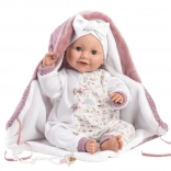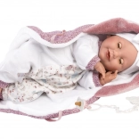 Ta realistična punčka Llorens New Born je zasnovana za pristno igro vlog staršev. Mehko tekstilno telesce je prijetno na dotik, plastični udi z zglobi omogočajo naravno pozicioniranje in sedenje. Ob pritisku na prsni koš punčka izgovori »mama«, »papa« ter sproži realističen jok, ki spodbuja empatično igro.
