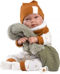 Priložen je dekorativni dudek in 3× gumbna baterija LR44 z navodilom za zamenjavo. Punčka je ročno izdelana v Španiji in zapakirana v elegantni darilni škatli – idealno za darilo. Garderobo lahko razširite z originalnimi oblačili Llorens za linijo New Born 43–45 cm.