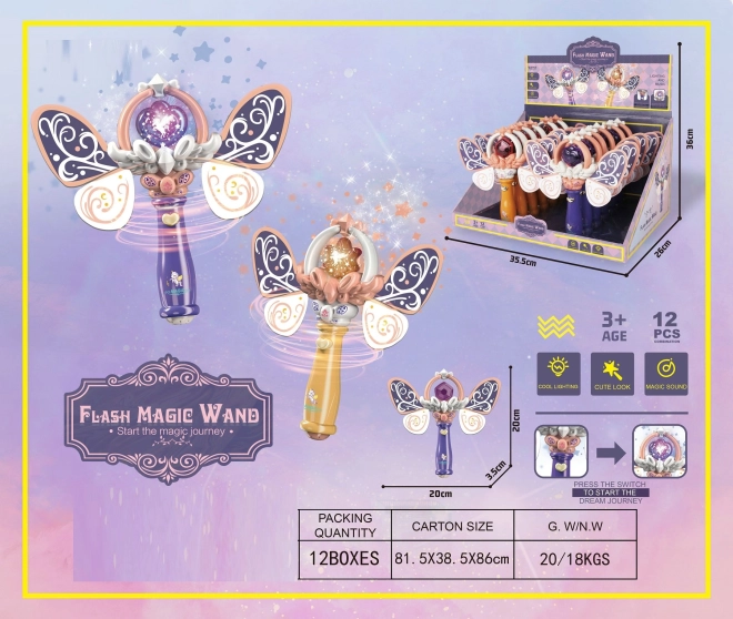 Pripravite se na svet poln magije s to čudovito čarobno paličico! Paličica je opremljena z gumbom, ki aktivira različne svetlobne in zvočne učinke. Vsak pritisk gumba prinese nov čaroben zvok, ki spodbuja otrokovo domišljijo.