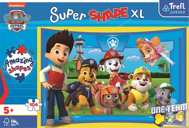 Odkrijte zabavo s sestavljankami XL Super Shape z motivom Tačke na patrulji. Veliki kosi in nekaj nenavadnih oblik naredijo sestavljanje privlačno in spodbudno. Idealno za otroke od 5 let, ki bodo uživali v veliko zabave in učenja pri sestavljanju slike velikosti 600 × 400 mm.