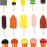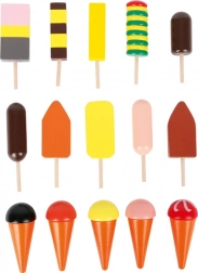 Pisana zbirka lesenih sladoledov in lučk otroke navdihuje k ustvarjalni igri, razvrščanju in kombiniranju.