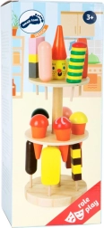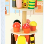 Trietažno stojalo za sladolede SMALL FOOT je idealen dodatek k otroški kuhinji ali trgovinici. Barvno lazurirani leseni sladoledi in lučke (pribl. 8–10 cm) se enostavno vstavijo v pripravljene odprtine in vabijo k neskončnim porcijam ustvarjalne igre.
