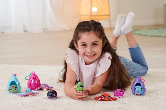 Pearly Pods prikazujejo podvodni svet naših malih prijateljev. Prisrčna majhna morska bitja živijo v svojih hišicah in lahko gledajo ven skozi drsna vratca. Svojega morskega prijatelja lahko zahvaljujoč priročnemu obesku vzamete s seboj v hišici. Prisrčna podvodna živalca v bleščeči izvedbi, nekatera pa z edinstvenim biserom!