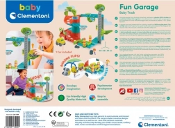 Ta pisana zabavna garaža CLEMENTONI BABY otrokom ponuja neskončno akcije in odkrivanja. Steza je zasnovana tako, da avtomobilček drsi navzdol, dela zabavne salte in se s pomočjo ročnega dvigala vrača na start – zabava tako nikoli ne konča.