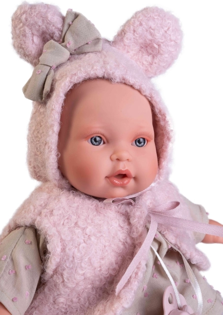 Kombinacija mehkega tekstilnega telesca ter kakovostnega mehčanega vinila na glavi in okončinah je idealna za crkljanje in enostavno rokovanje z otroškimi rokami. Proizvajalec ANTONIO JUAN daje poudarek trajnosti – izbrana oblačila so iz organskega bombaža brez kemične obdelave.