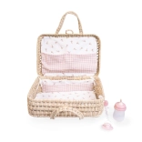 Stilski pleteni kovček z opremo za punčko blagovne znamke ANTONIO JUAN je idealen za male negovalke. Ponuja praktične predalčke, ekološko izvedbo iz naravnih materialov in osnovno opremo za dojenčka – stekleničko, dudico in pleničko za enkratno uporabo. Odličen za potovanja, sprehode in tudi kot piknik kovček.