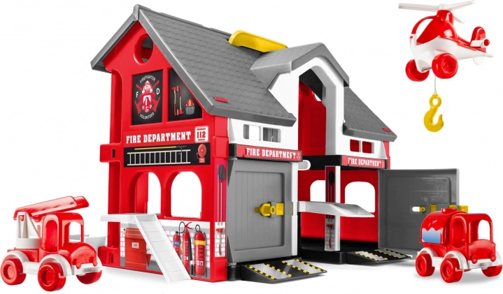 Dvonadstropna hiška – gasilska postaja iz serije Play House verno posnema pravo reševalno bazo z rampami za vozila, prostornim hangarjem, transportnim dvigalom in nadstropjem za dežurne gasilce. Priložen je tudi gasilski helikopter. Zaradi trdne zasnove in varnih materialov je idealna za vsakodnevno igro otrok od 3 let.