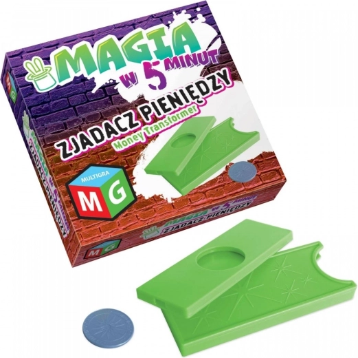 Odkrijte, kako v nekaj trenutkih očarati občinstvo: s čarovniškim kompletom Čarovnija v 5 minutah – Požiralec kovancev znamke Multigra boste prikazali izginotje in ponovno pojavljanje kovanca kot pravi profesionalec. Zahvaljujoč posebnemu čarovniškemu predalčku, lažnemu kovancu in podrobnim navodilom trik zlahka obvladajo tudi popolni začetniki od 8. leta dalje.