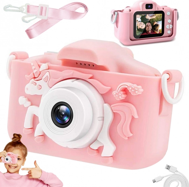 Fotoaparat je izdelan iz visokokakovostnih materialov, kar zagotavlja njegovo vzdržljivost. Silikonski ovitek z igrivim dizajnom ščiti napravo pred padci. Zaradi lahke zasnove je primeren za majhne roke in ga je mogoče udobno nositi na vrvici.