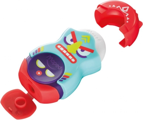 Z igrivim totemskim videzom in pisanimi barvami postane učenje zabavno. Ergonomska oblika dobro leži tudi v otroških rokah in se preprosto odpre za hitro praznjenje ostružkov.