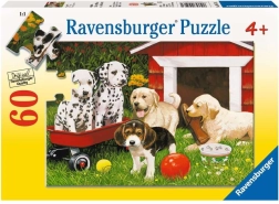 Potopite se v zabavo s sestavljanko Ravensburger! Ta sestavljanka z motivom Pasja zabava vsebuje 60 delov in je idealna za otroke in odrasle, ki obožujejo prisrčne mladičke.