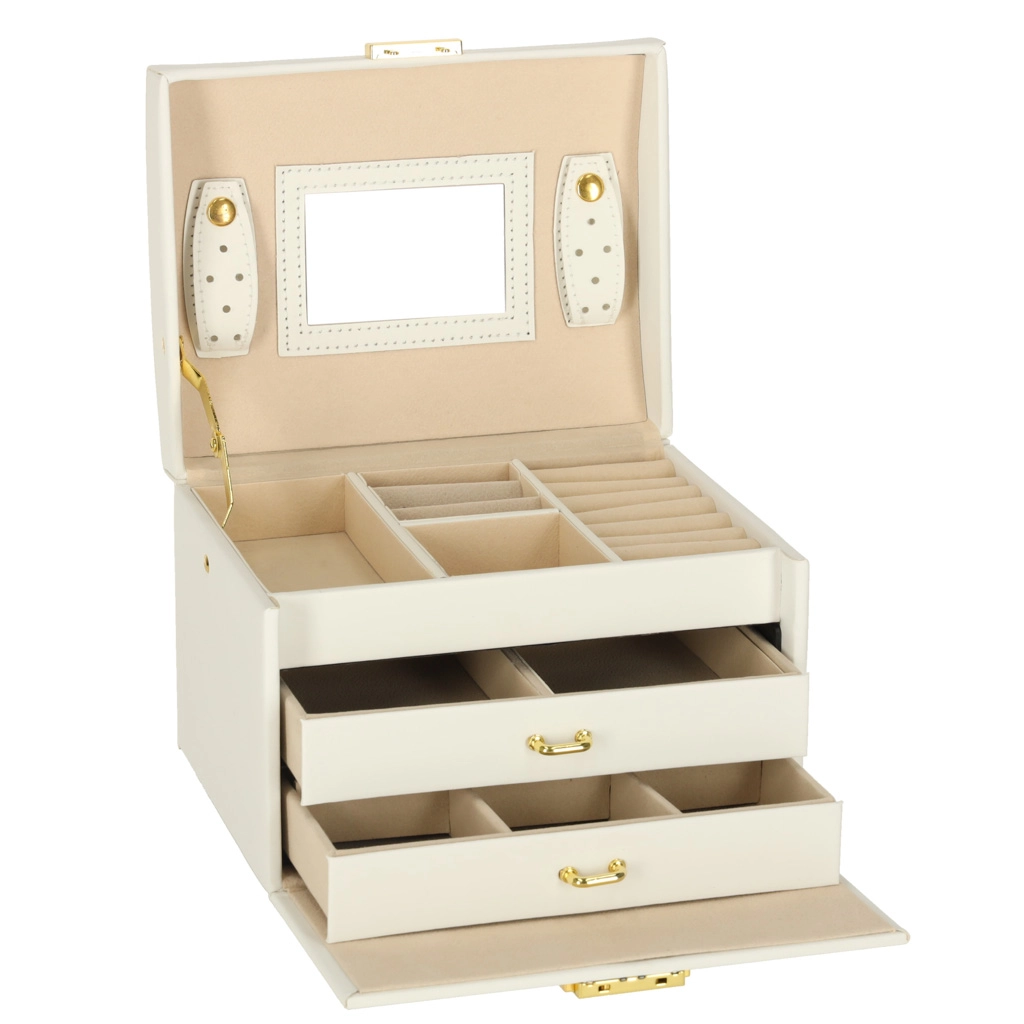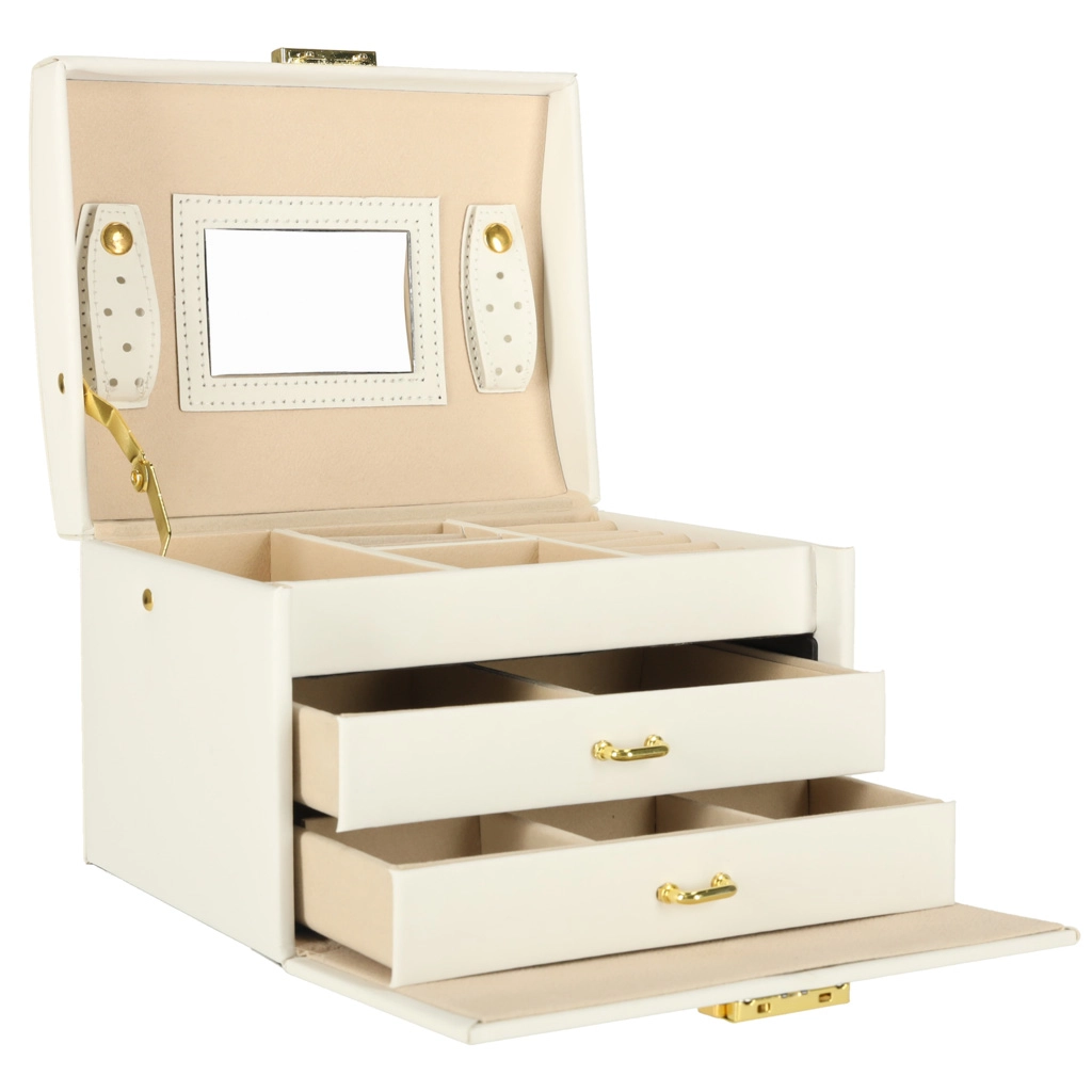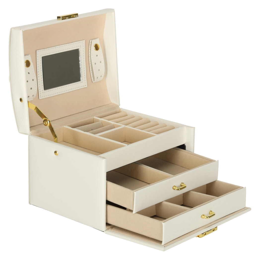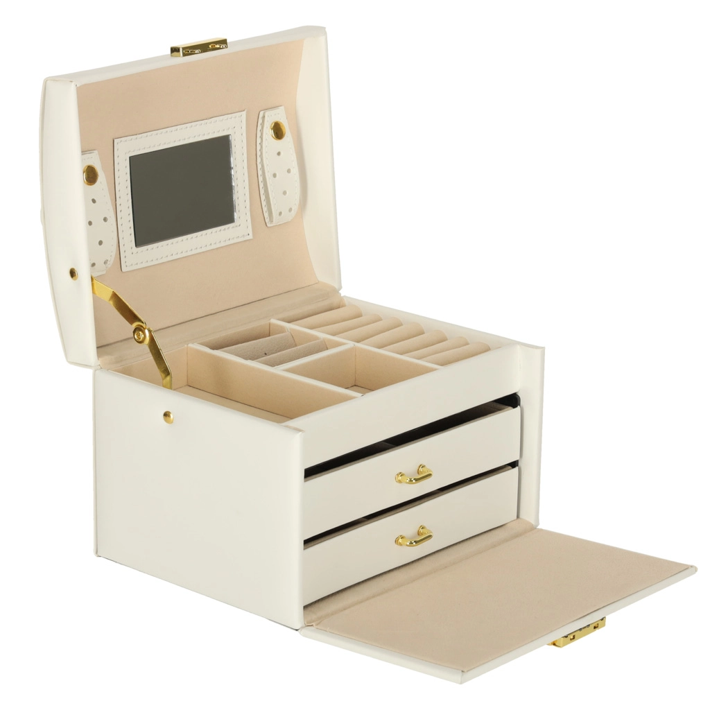Premišljena razporeditev škatel za nakit olajša vsakodnevni red: predalčki za zapestnice, valjčki za prstane, kljukice za verižice in mehko oblazinjenje, ki ščiti nežne površine. Zahvaljujoč ogledalcu lahko otroci preprosto preizkusijo dodatke, medtem ko varno zapiranje in po želji tudi zaklep s ključkom (zaklepna škatla za nakit, otroška škatla za nakit z zaklepom) ohranjata zaklade na varnem. Trdna konstrukcija iz lesa ali čvrstega kartona preprečuje praske in zapletanje verižic, zato je vse pregledno na svojem mestu. Pri izbiri upoštevajte velikost (majhna potovalna škatla za nakit za otroke vs. prostorna škatla za nakit za na komodo), vrsto materiala (lesena škatla za nakit, kartonasta s kovinskimi elementi), priljubljene motive ter funkcije, kot so glasbeni mehanizem, ogledalce ali izvlečni predalčki. Otroška škatla za nakit pomaga razvijati občutek za red in samostojnost, varuje prve uhane, prstane in zapestnice ter ponuja praktične predalčke za drobnarije. Kot popolno darilo za male dame navduši z lepim videzom in dolgo življenjsko dobo.