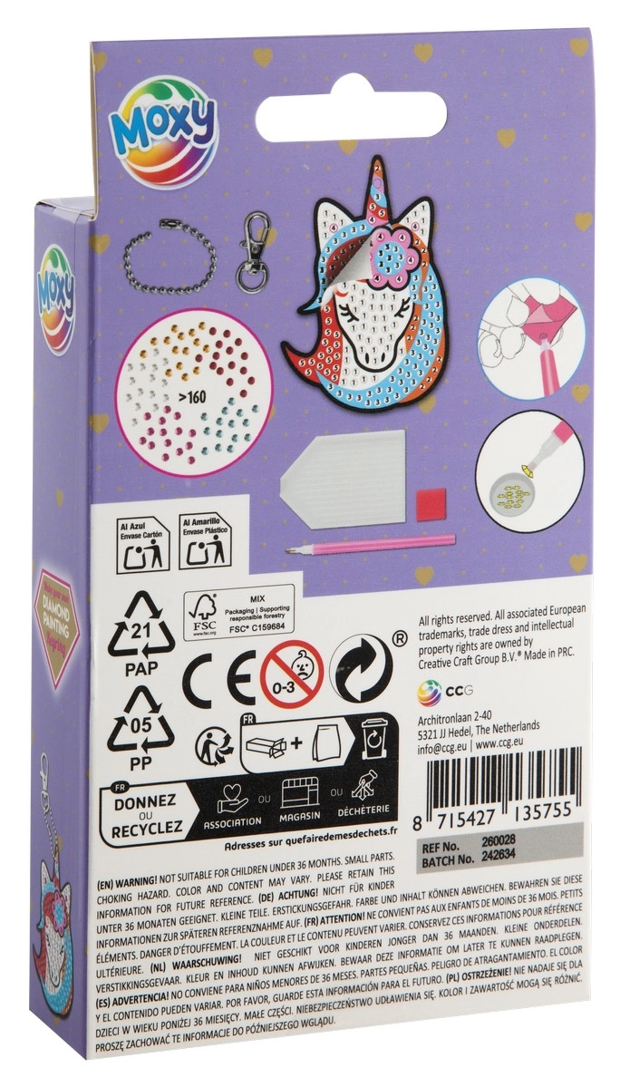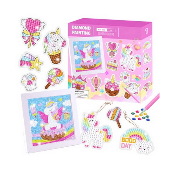 Prebudite otroško domišljijo z bleščanjem kamenčkov – diamantno slikanje za otroke spremeni vsak popoldan v zabavno ustvarjanje. Otroški kompleti za diamantno slikanje (diamond painting) vsebujejo predtiskano sliko z lepilno površino, okrogle kamenčke, aplikacijsko pero in vosek, zato je začetek enostaven in zabaven. Zahvaljujoč večjim simbolom in pregledni legendi je mozaik s kamenčki dostopen tudi popolnim začetnikom, končna slika pa zasije s bleščečim 5D učinkom.